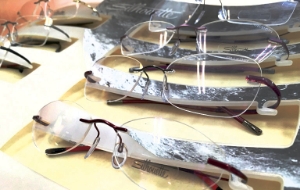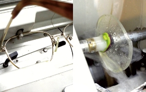 - 入荷したレンズは度数が正しく出来上がっているか、傷や不良が無いか検品します。まずレンズの中心をマーキングし、トレース機で測定したフレームの形に沿って切削器でカット。その後、手作業で面取りや微調整を行い、しっかりとメガネを仕上げます。最終検査を行い厳しいチェックを経たものをお客様にお渡しします。